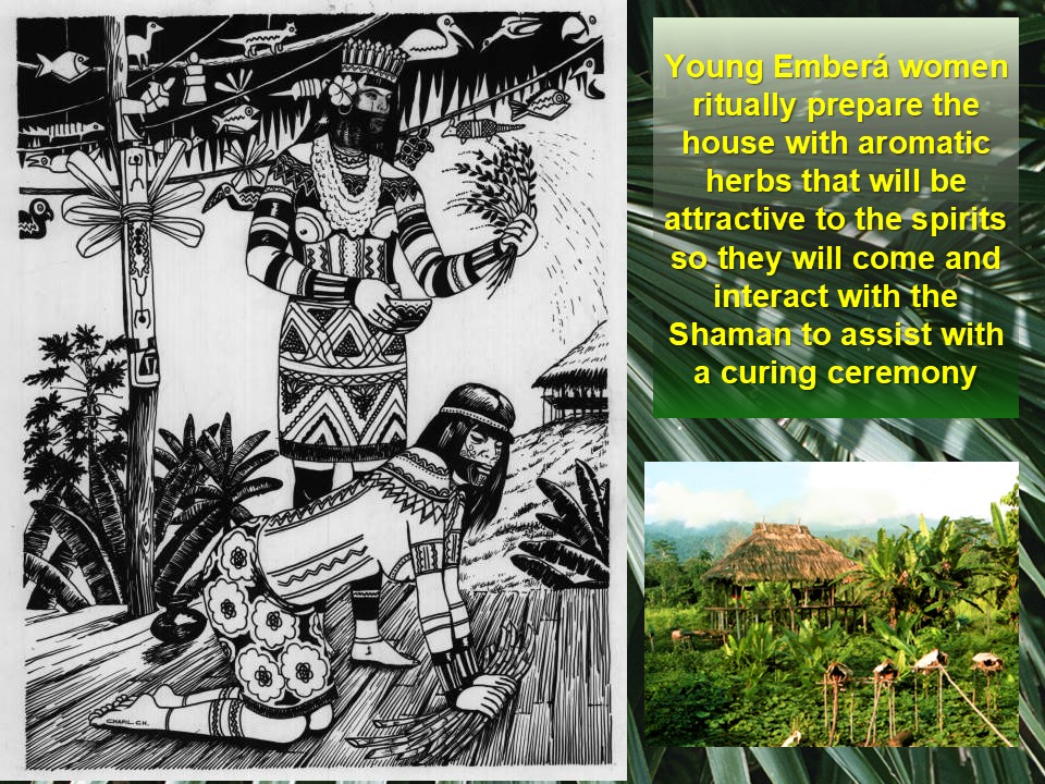The Emberá have a sophisticated cosmology or, if you will, religion in which the many actors, spirits, demons, people, animals and natural forces interact in a complex and dynamic spiritual equilibrium. It is the role of the shaman to maintain this equilibrium by creating harmony among all these competing forces and to ensure that the spirits from time-to-time can be bound to human intention through carefully executed rituals that seduce the often ambivalent spirits into cooperation. I discuss the ecological implications of this cosmological perspective in a previous paper.